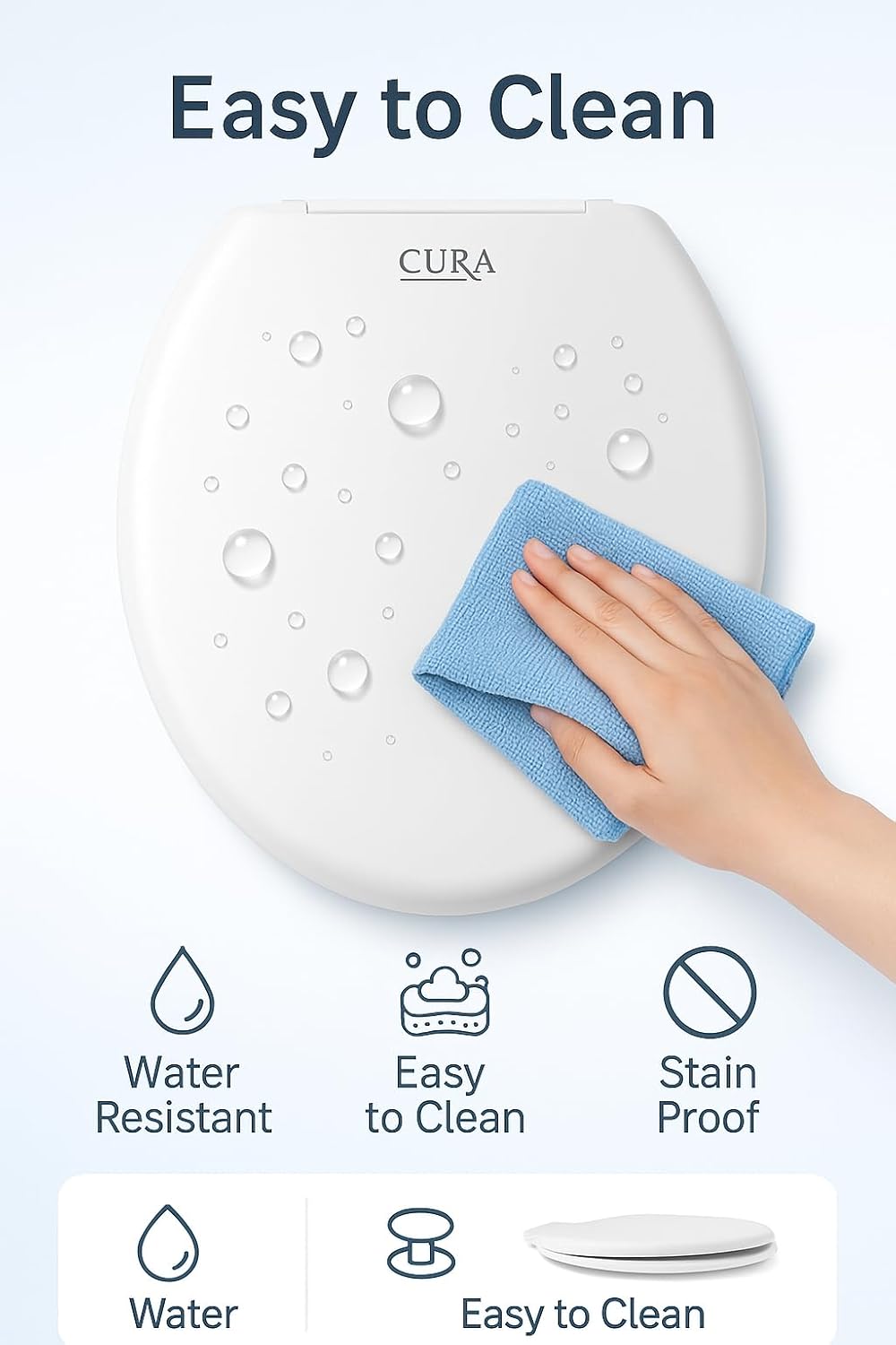 A: Soft-close seats have a hydraulic damper mechanism that lowers the lid slowly and silently — no slamming noise. Hard-close seats are simpler and more affordable but close with a bang. Soft-close is recommended for families with children.